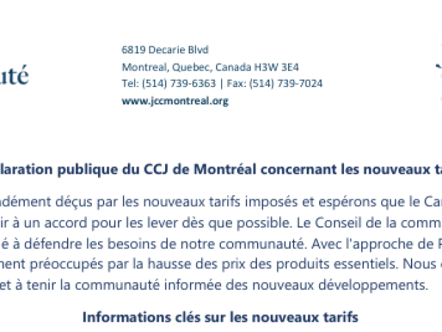 Le conseil de la communauté juive de Montréal (CCJ) vise à protéger les droits juifs ainsi qu’à aider les citoyens dans tous les aspects de la vie, et ce, selon la tradition et la Halacha (loi juive). Les membres du conseil sont conscients de l’envergure et de la portée de leurs services et sont donc profondément sensibles aux besoins de la communauté et aux épreuves de la vie. Les diverses divisions du CCJ possèdent chacun leur propre mandat, et ceux-ci interagissent lorsque nécessaire.